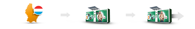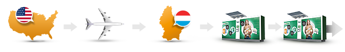3. Ankunft eines Pakets in Kanada, USA, UK, IT oder ES, Versand nach Luxembourg und Anlieferung an einem Paketshop.