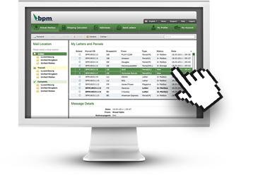 Envie du dernier portable sorti aux USA, de chaussures en provenance d’Italie, de jeux vidéo disponibles en Grande-Bretagne ? Aucun problème : avec le système innovant de gestion du courrier de BPM, faire des achats en ligne dans le monde entier est d’une simplicité extrême ! Car en tant que client de BPM, vous pouvez passer des commandes partout dans le monde, y compris auprès de vendeurs qui, normalement, ne livrent pas à l’étranger.